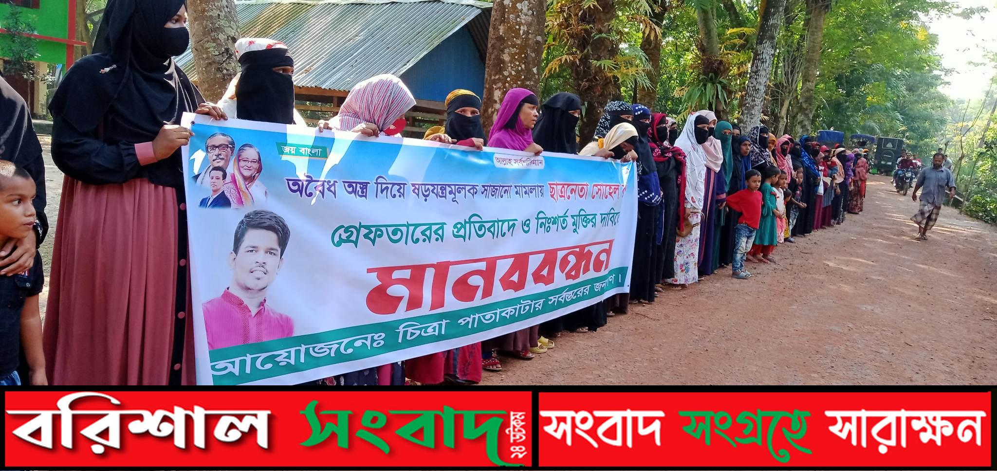 মঠবাড়িয়ায় ছাত্রনেতাকে গ্রেফতারের প্রতিবাদে ও নিঃশর্তে মুক্তির দাবিতে এলাকাবাসীর মানববন্ধন
