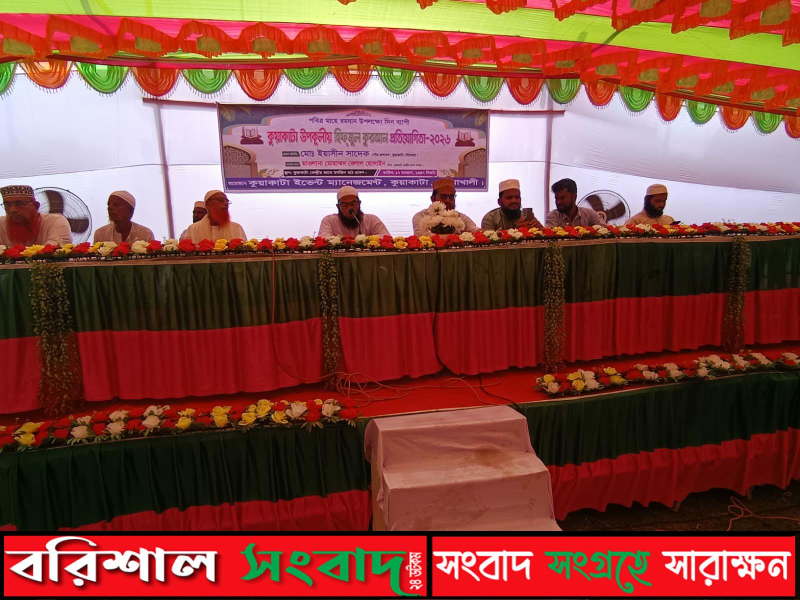 জনি আলমগীর ,কুয়াকাটা( কলাপাড়া ) প্রতিনিধিঃ কুয়াকাটায় কোরআনের পাখি হাফেজদের উৎসাহিত ও অনুপ্রানিত করার লক্ষ্য তৃতীয় বারের মত কুয়াকাটা ইভেন্ট ম্যানেজমেন্ট এর আয়োজনে দুইদিন ব্যাপী ” কুয়াকাটা উপকূলীয় হিফজুল কোরআন ” প্রতিযোগিতা -২০২৬ অনুষ্ঠিত হয়েছে। শনিবার (৭ মার্চ) সকাল ১০ টায় কুয়াকাটা কেন্দ্রীয় জামে মসজিদ মাঠে অনুষ্ঠিত হয়।উক্ত প্রতিযোগিতায় ১২ টি প্রতিষ্ঠানের ৫০ জন প্রতিযোগি অংশগ্রহণ করেন।
